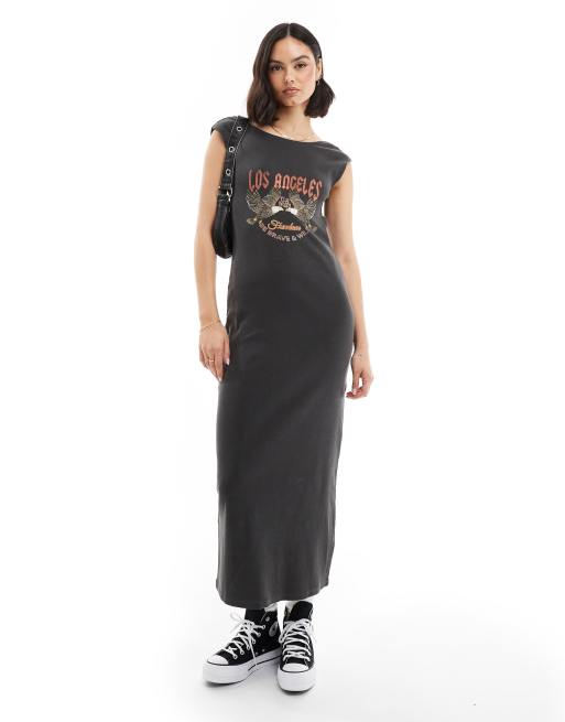 Miss Selfridge graphic print midaxi dress in washed grey