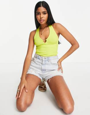 Miss Selfridge heart buckle bodysuit in yellow