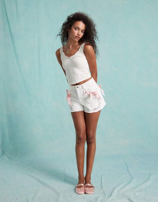 Miss Selfridge heart pocket short with bow detail in ecru