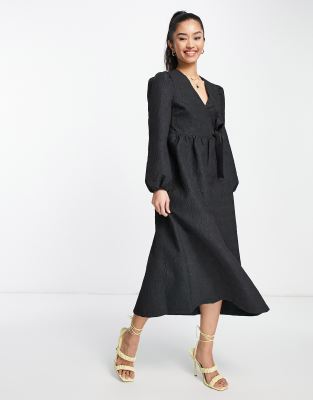 Miss Selfridge jacquard wrap midi dress in black