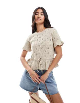 Miss Selfridge knitted tie waist peplum short sleeve cardigan in cream