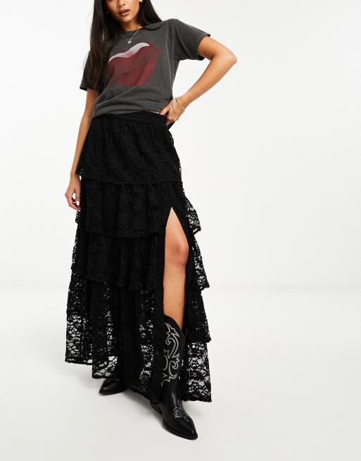 Miss Selfridge lace tiered maxi skirt in black