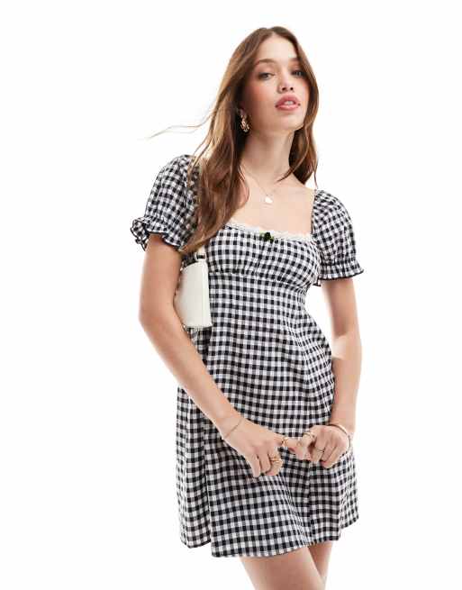 Miss Selfridge lace trim mini dress in black gingham