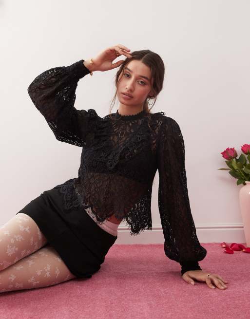 Miss Selfridge lace victoriana blouse in black
