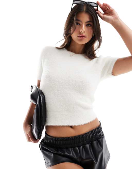 Miss Selfridge lash knitted short sleeve top in cream