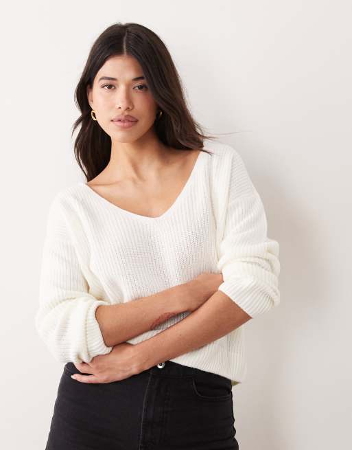 Miss Selfridge lattice back knitted jumper with lace in cream