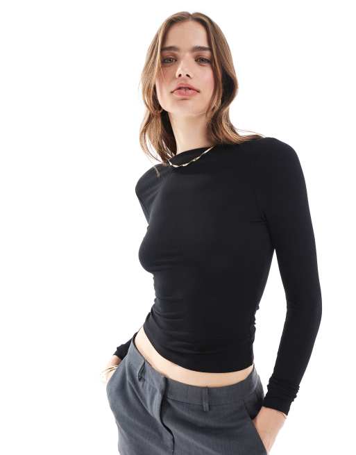 Miss Selfridge long sleeve slash neck top in black
