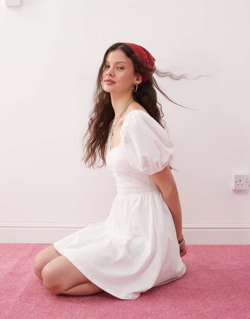 Miss Selfridge milkmaid puff sleeve mini dress in white