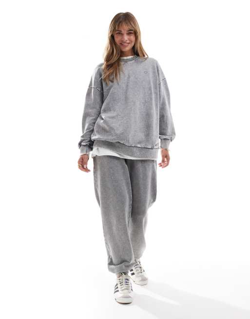 Miss Selfridge oversized acid wash sweatshirt co-ord in grey