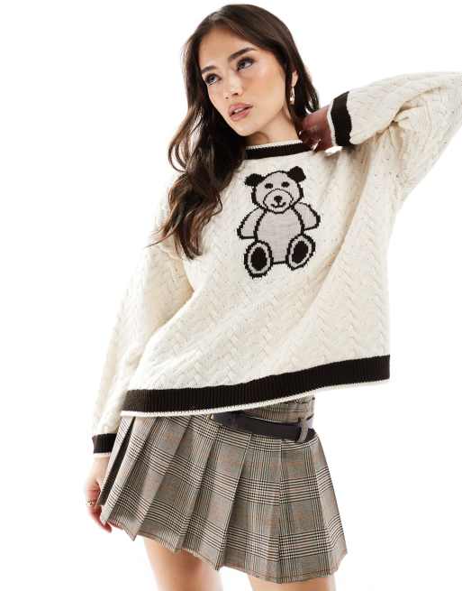 Miss Selfridge oversized cable knit jacquard teddy bear jumper