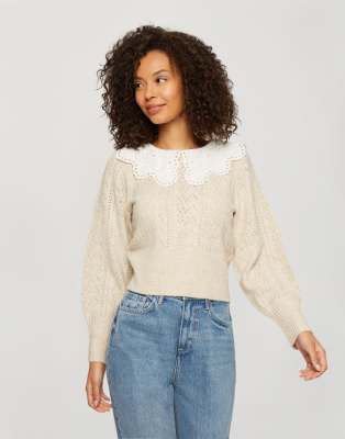 Miss Selfridge oversized collar jumper in cream