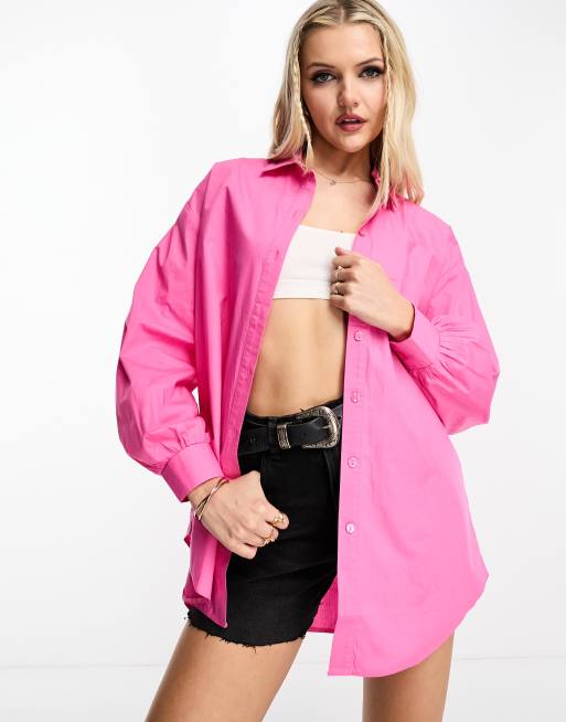 Miss Selfridge oversized poplin shirt in dark pink