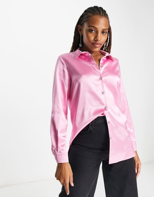 Miss Selfridge oversized satin shirt with diamante buttons in light pink