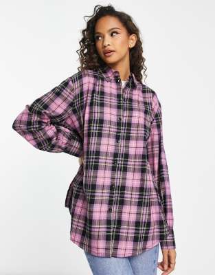 Miss Selfridge oversized shirt in pink and lime check