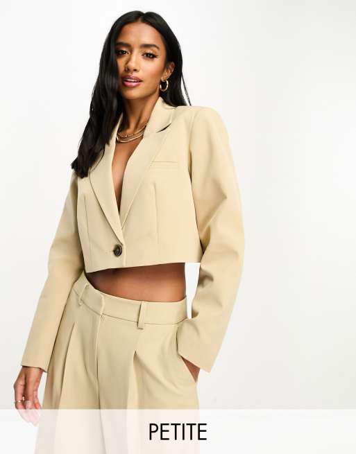 Miss Selfridge Petite co-ord cropped blazer in stone