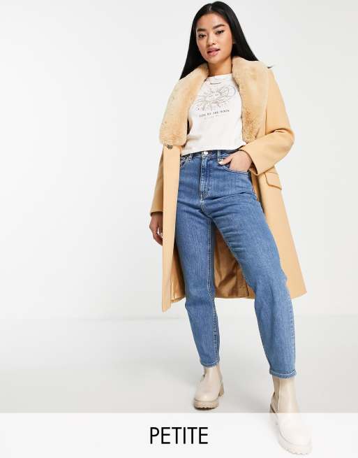 Miss Selfridge Petite faux fur collar belted robe coat in camel