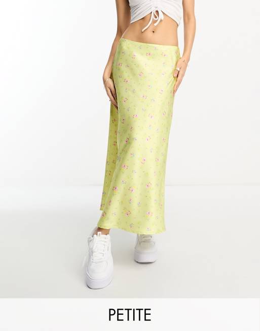 Miss Selfridge Petite satin bias maxi skirt in yellow ditsy