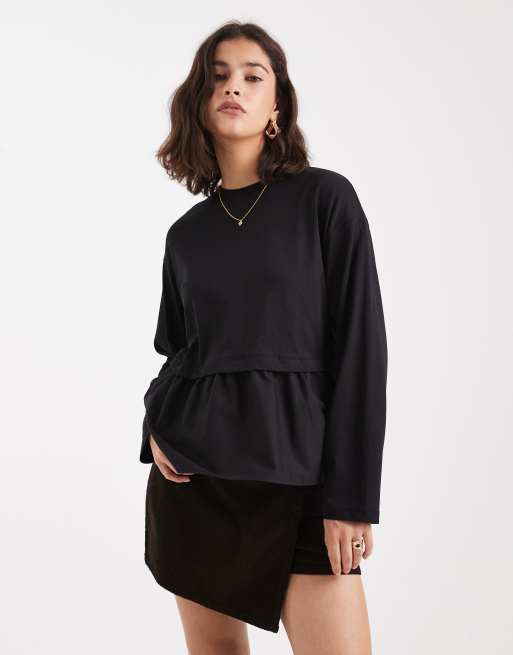 Miss Selfridge poplin mix ruffle hem t-shirt