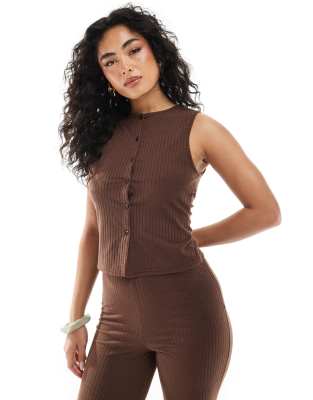 Miss Selfridge ribbed button up sleeveless top co ord in chocolate