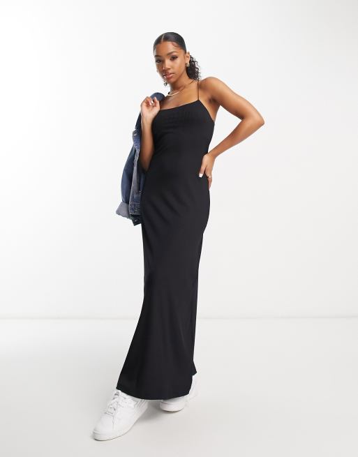 Miss Selfridge ribbed skinny strap cami maxi dress in black