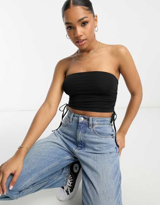 Miss Selfridge ruched side side top in black