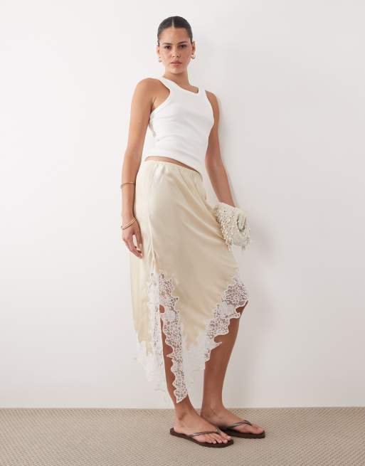 Miss Selfridge satin asym maxi skirt in buttermilk