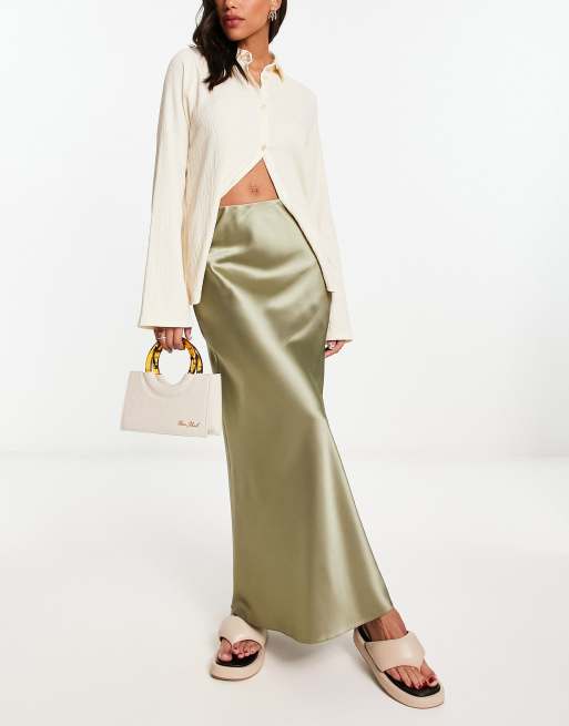 Miss Selfridge satin bias maxi skirt in khaki