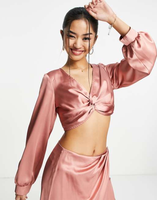 Miss Selfridge satin twist front blouse in dark blush