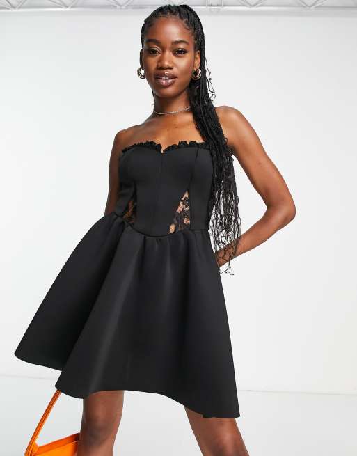 Miss Selfridge scuba lace trim bandeau mini dress in black