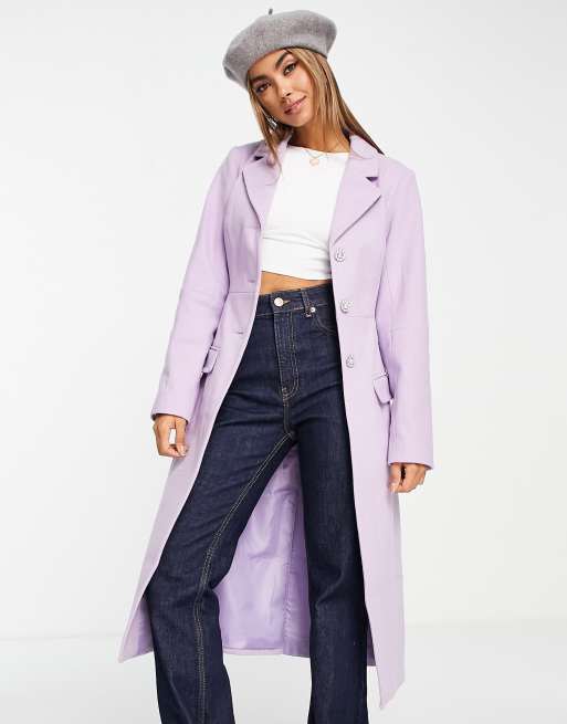 Miss Selfridge sculpted maxi coat with diamante button in lilac