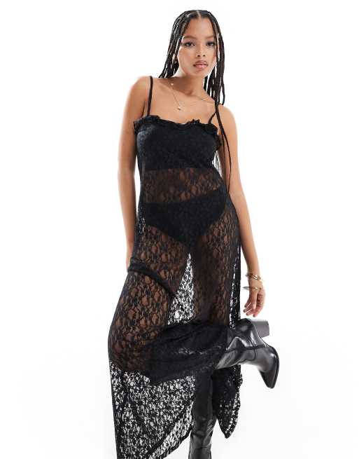 Miss Selfridge sheer lace cami maxi dress in black