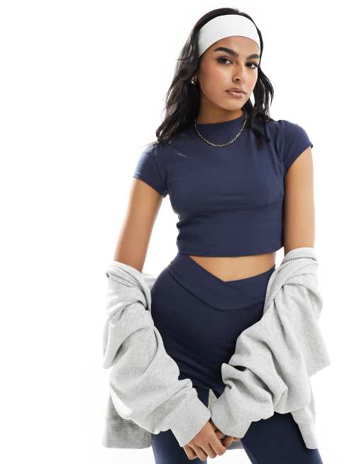 Miss Selfridge short sleeve crop top co-ord in navy blue