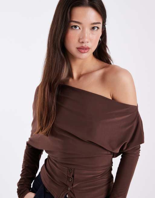 Miss Selfridge slinky off the shoulder top with button detail