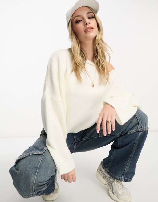 Miss Selfridge slouchy off the shoulder jumper in cream