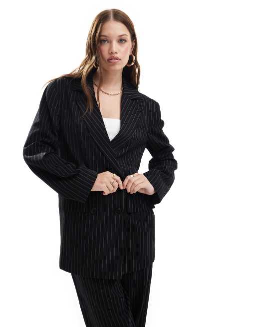Miss Selfridge slouchy oversized double breasted blazer in mono pinstripe co ord