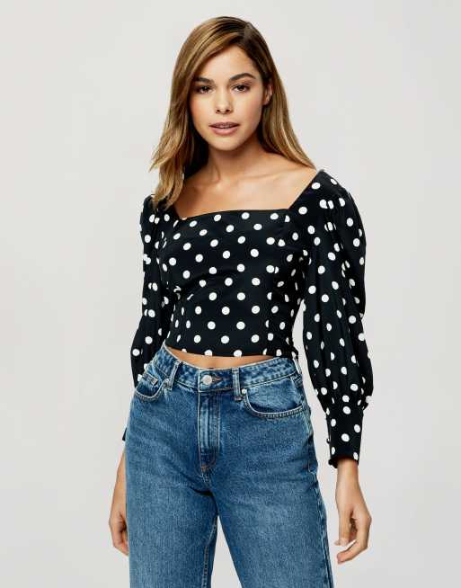 Miss Selfridge square neck blouse in black & white spot