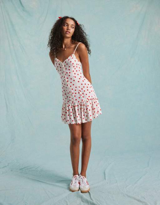Miss Selfridge strappy button through mini sundress in cream polka dot