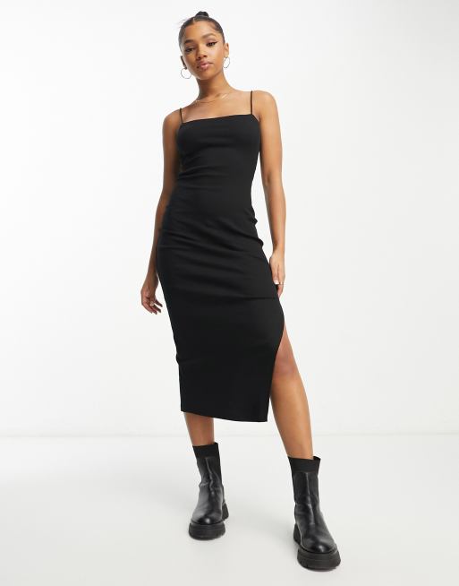 Miss Selfridge strappy midi dress with split detail in black