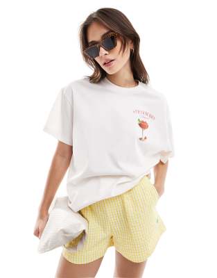 Miss Selfridge Strawberry Daiquiri oversized t-shirt in white