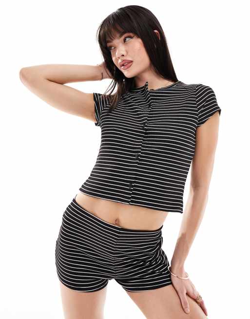 Miss Selfridge stripe rib mini short co-ord in black and white stripe