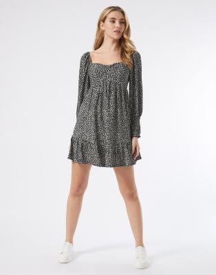 Miss Selfridge sweetheart neckline mini dress in monochrome ditsy floral