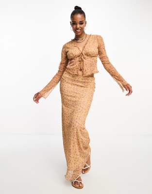 Miss Selfridge texture low rise maxi skirt co-ord in floral print