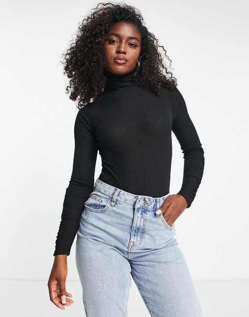 Miss Selfridge textured mesh roll neck bodysuit in black
