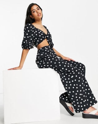 Miss Selfridge tie front top and trouser co-ord in mono spot