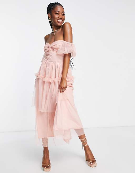 Miss Selfridge tulle twist front maxi dress in pink