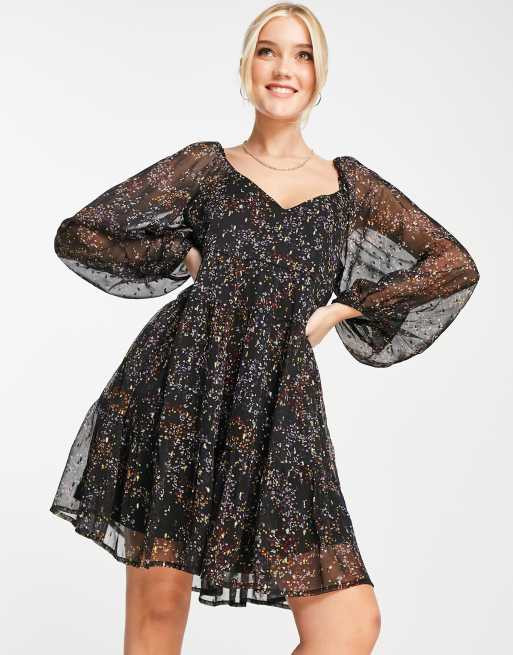 Miss Selfridge v neck chiffon smock dress in ditsy print