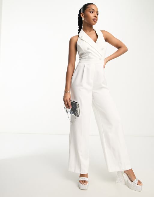 Miss Selfridge waistcoat jumpsuit in ivory