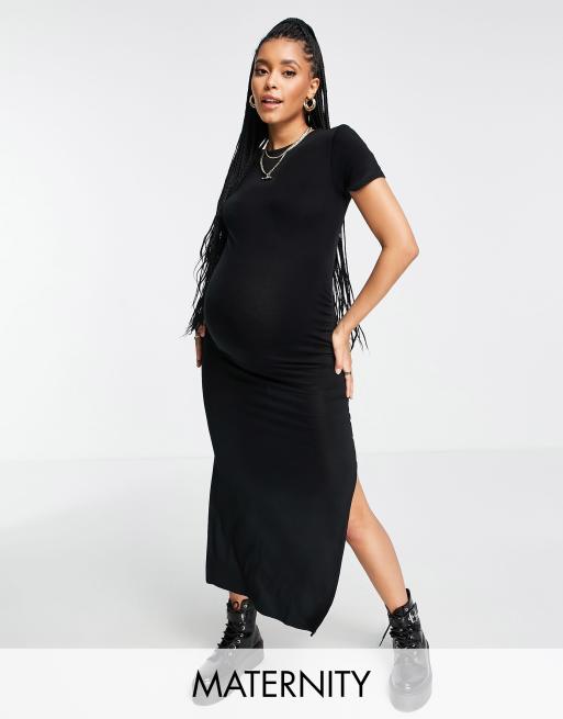 Missguided Maternity maxi dress with short sleeves in black