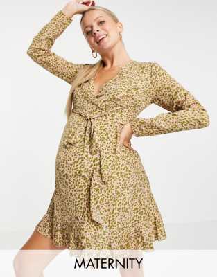 Missguided Maternity wrap mini dress with ruffle detail in pink