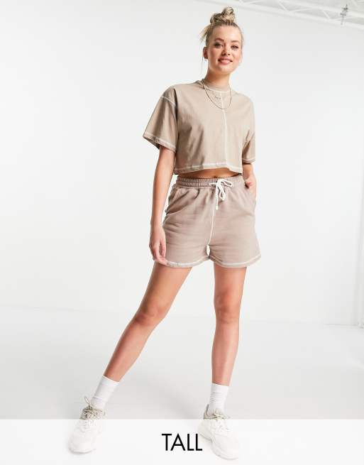 Missguided Tall co-ord runner short with contrast stitch in brown